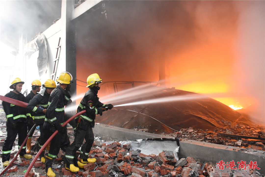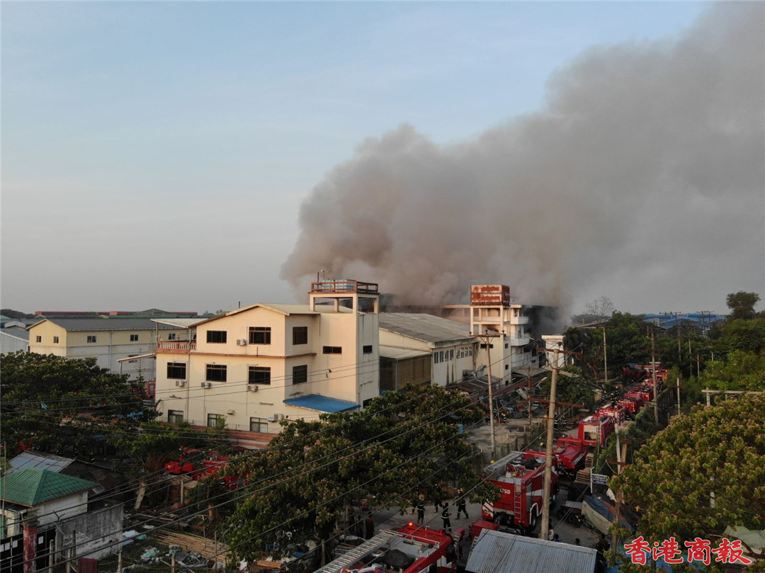 緬甸消防部門正在撲滅中國企業的大火(路透社/ 緬甸消防部門)