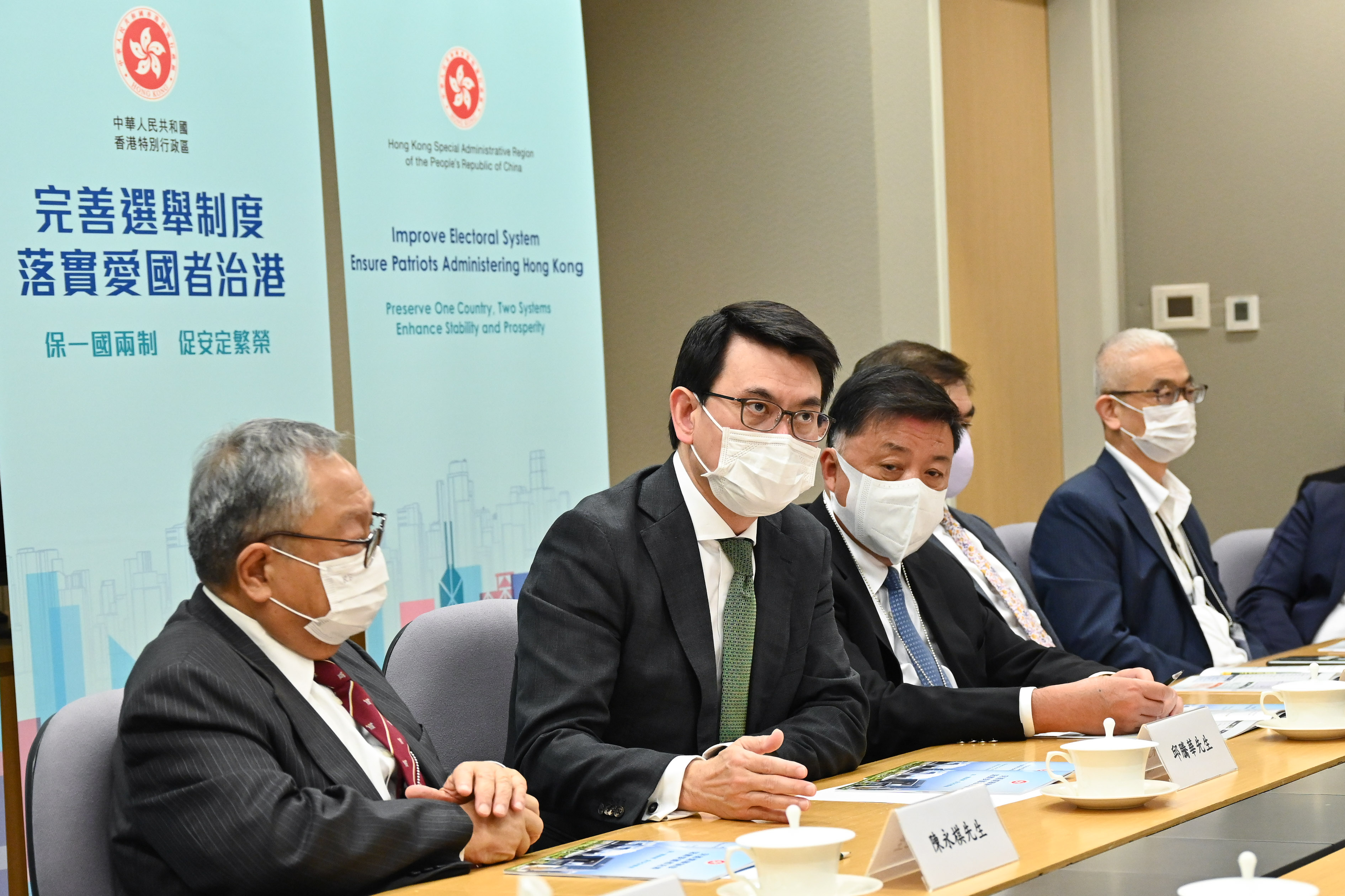 邱騰華今日就完善香港選舉制度與紡織及製衣界代表會面。