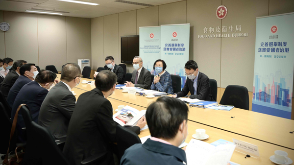 政府指食物及衛生局局長陳肇始今日(9日)與來自醫學界的代表會面,向他們解說完善香港特別行政區選舉制度之詳情,讓業界了解並支持有關工作。