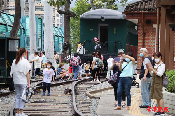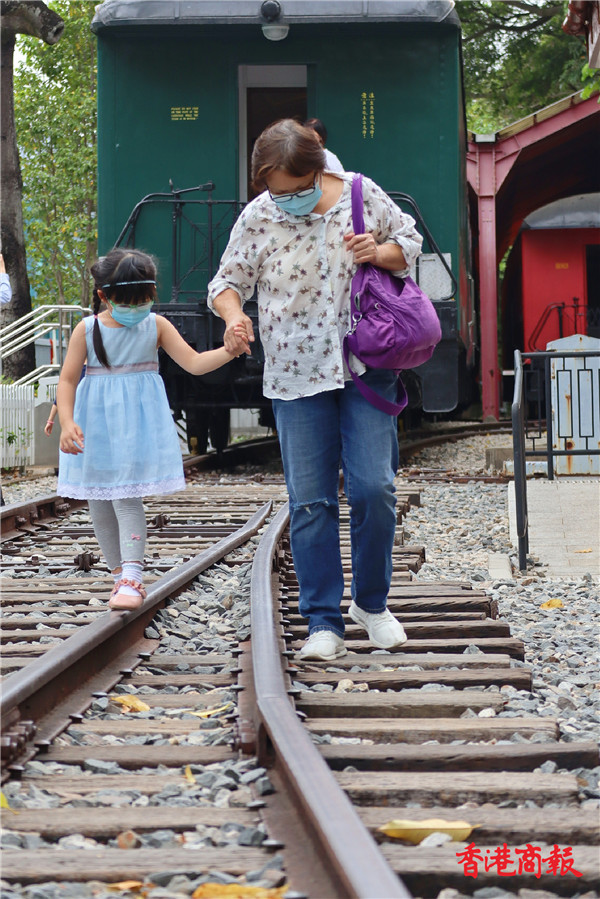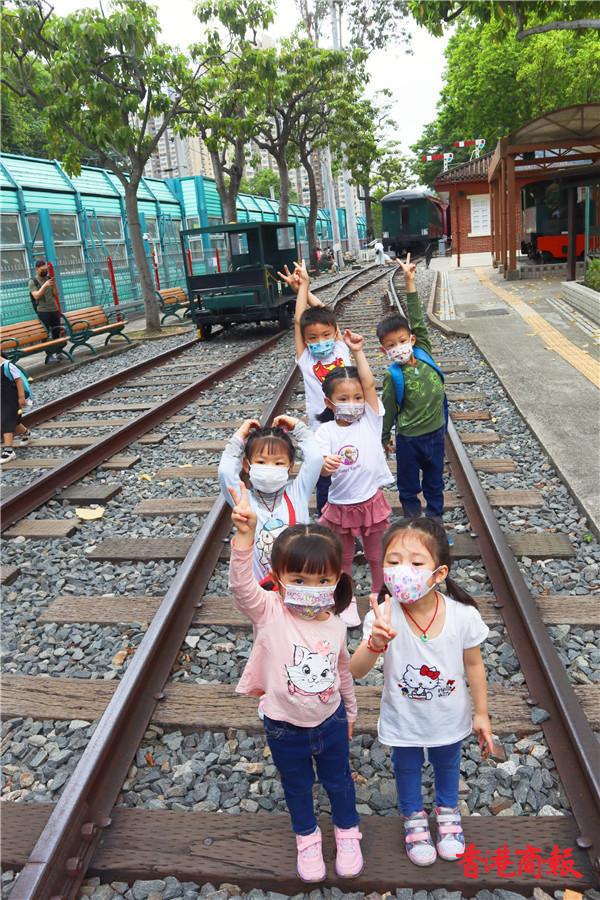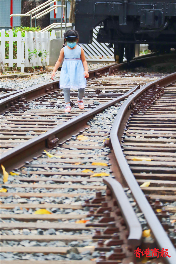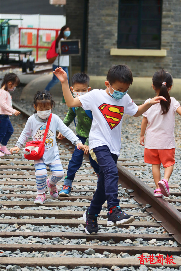 參觀完後小朋友都會在火車軌上奔跑,有的在枕木上跳來跳去,有的在路軌上像行平衡木般行走,對他們來說這是很難得的體驗。(馮瀚文攝)