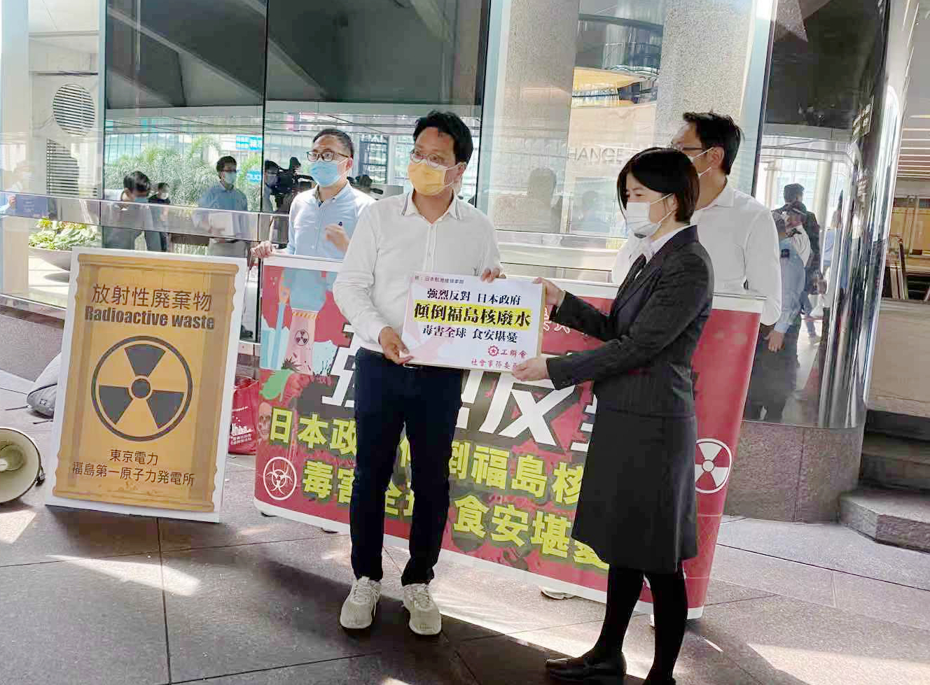 工聯會社會事務委員會今日(13日)前往日本駐港領事館請願,就日本政府傾倒福島核廢水表示強烈反對。