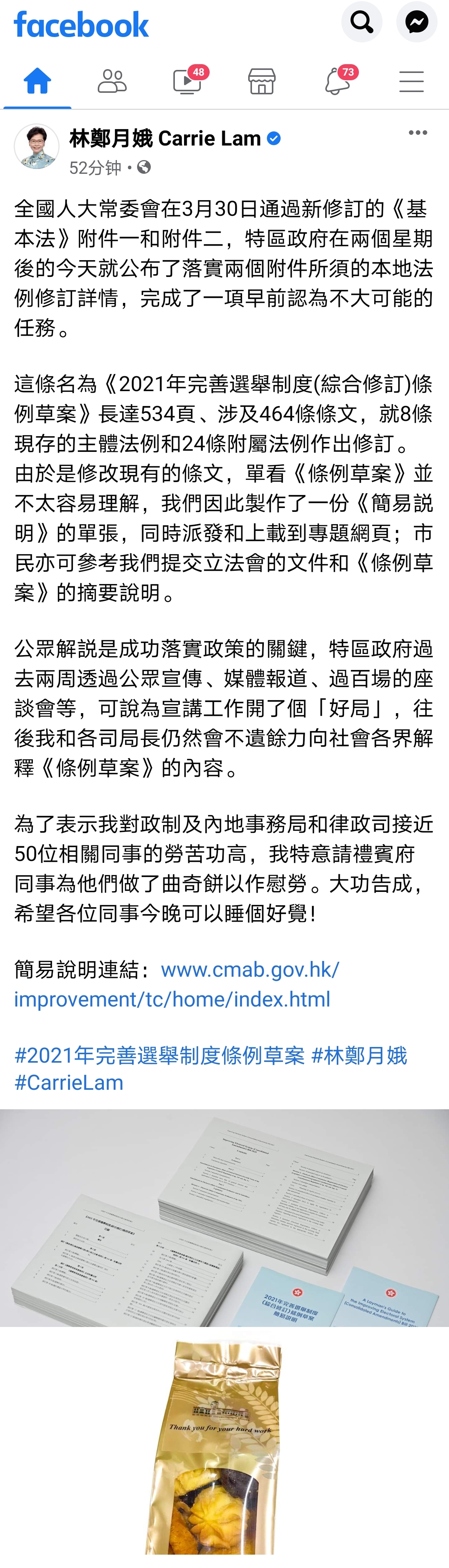 為了表示我對政制及內地事務局和律政司接近50位相關同事的勞苦功高,我特意請禮賓府同事為他們做了曲奇餅以作慰勞。大功告成,希望各位同事今晚可以睡個好覺!