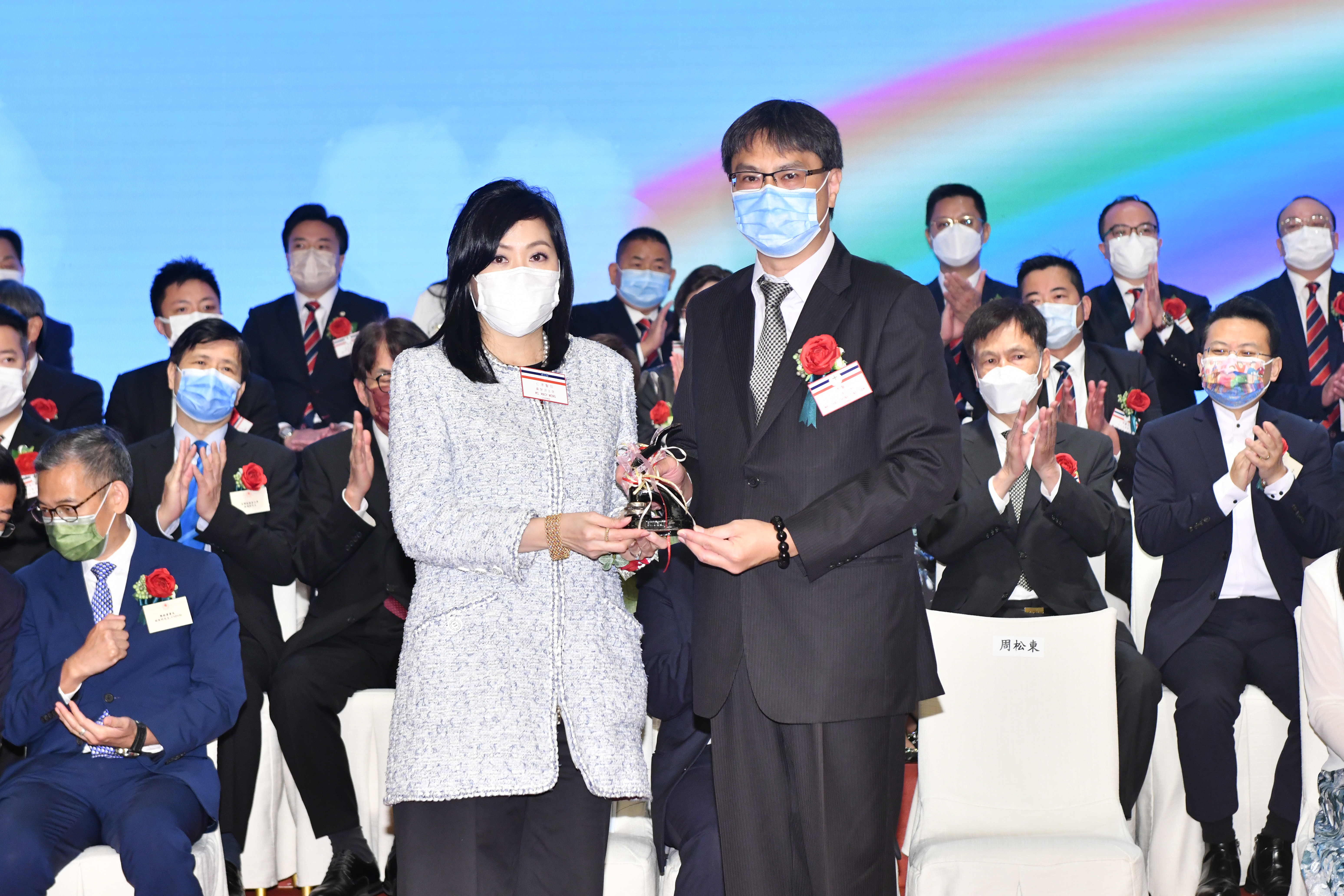 懲教署署長胡英明頒發第53屆董事局全年「最高籌款奬」予冠軍鍾培生及季軍周松東。