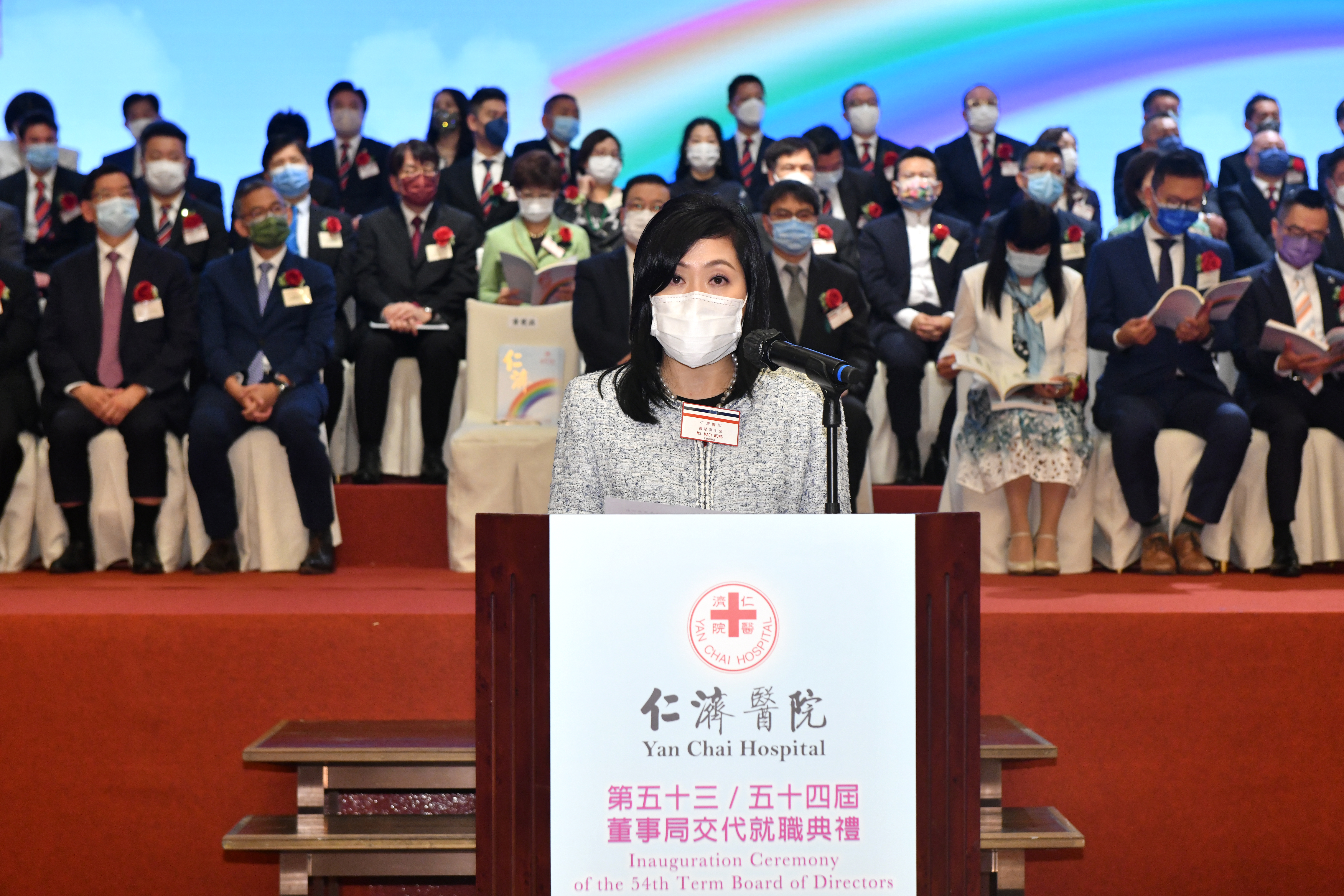 第54屆仁濟醫院董事局主席黃楚淇於交代就職典禮上發表其工作展望與計劃重點。
