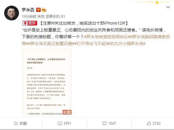 羅永浩此前曾表示,其今年的目標是想爭取在年底前把債還完。