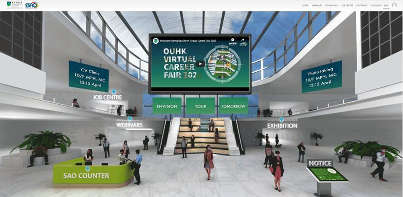 公開大學指博覽包括履歷及職業生涯規劃諮詢服務、16個網絡研討會和80多個虛擬展覽展示近300個職位空缺;博覽更加入視像面試溝通平台以進一步拉近僱主與學生距離。