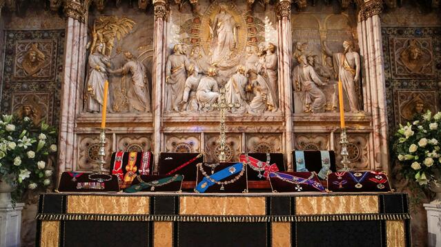 菲臘親王的勛章及徽章等物品被放置在舉行葬禮的聖佐治教堂。