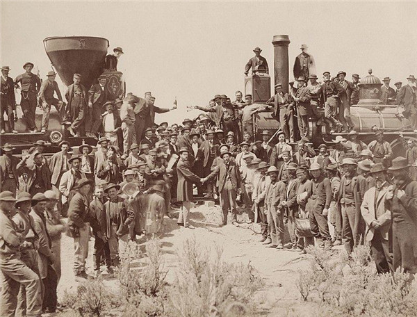 1869年5月10日铁路合拢纪念照片,上面没有一个华人的面孔。