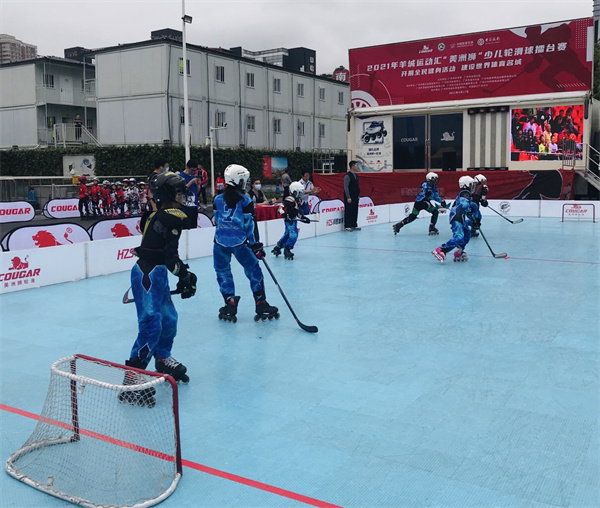 羊城運動匯「美洲獅」少兒輪滑球擂台賽正在進行。(徐紅 攝)