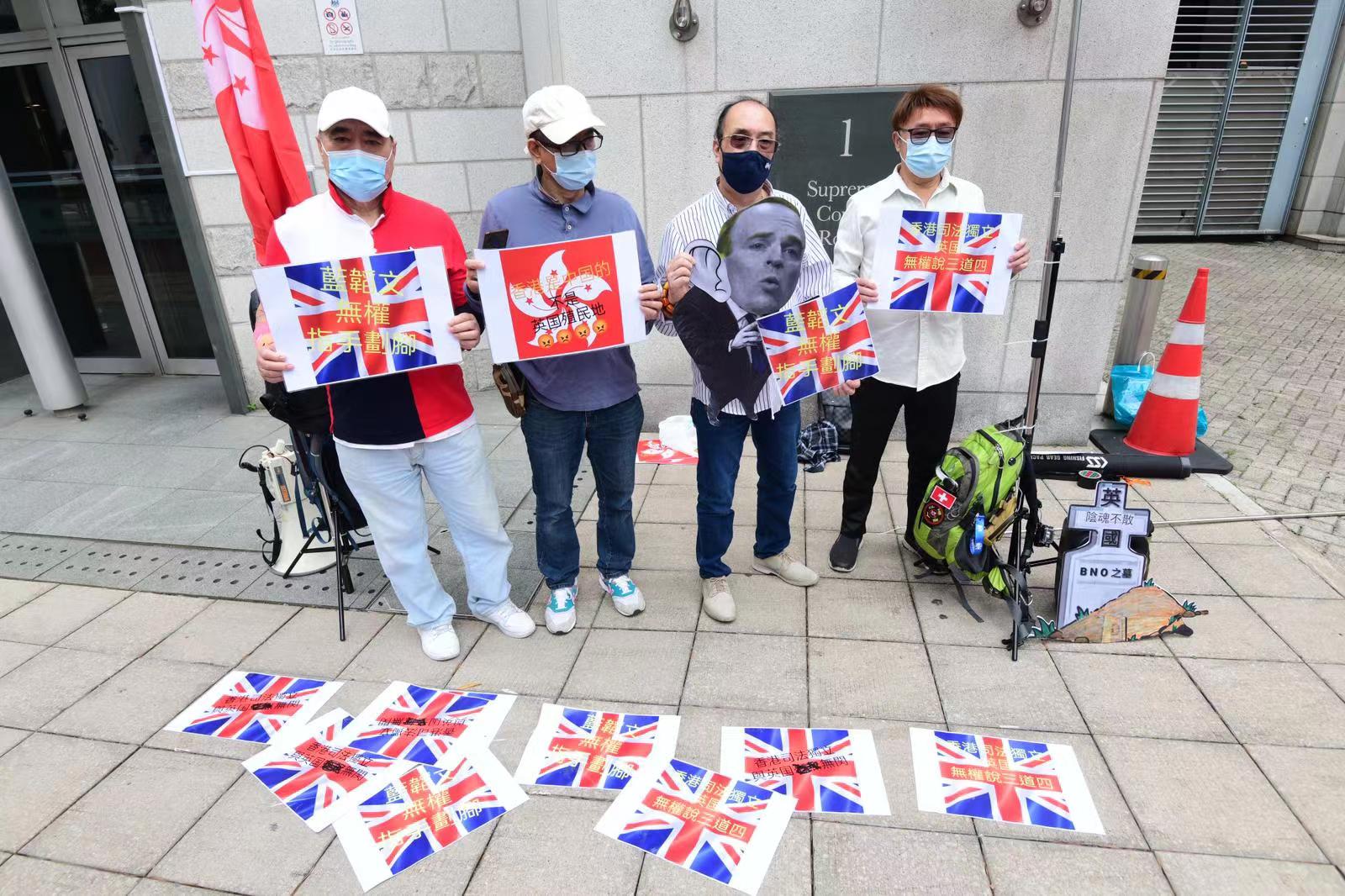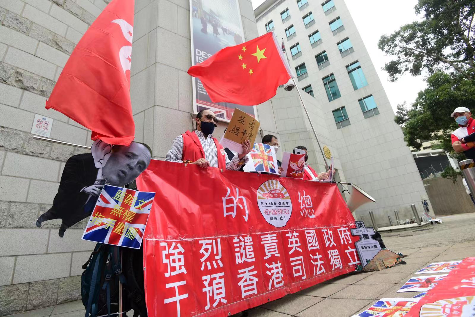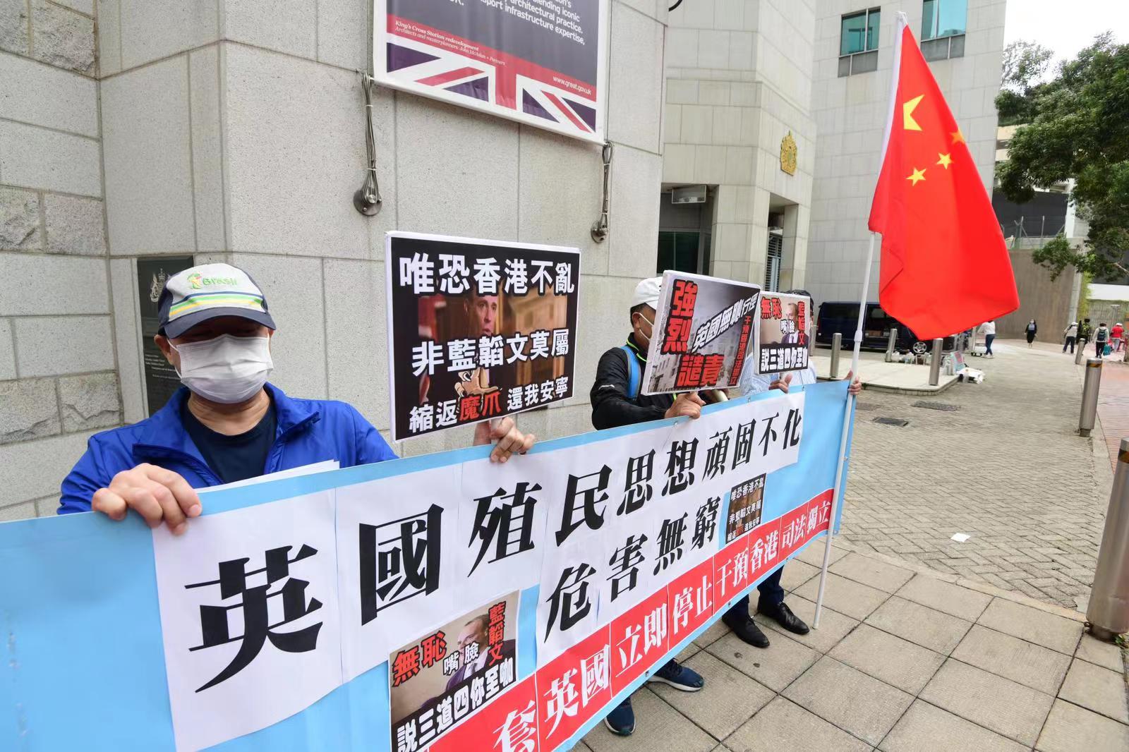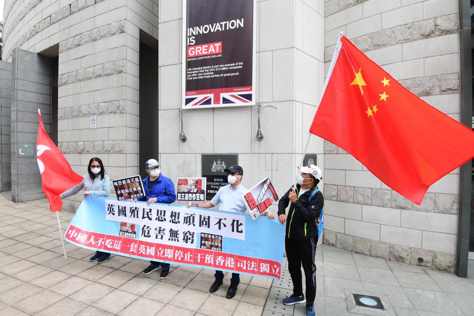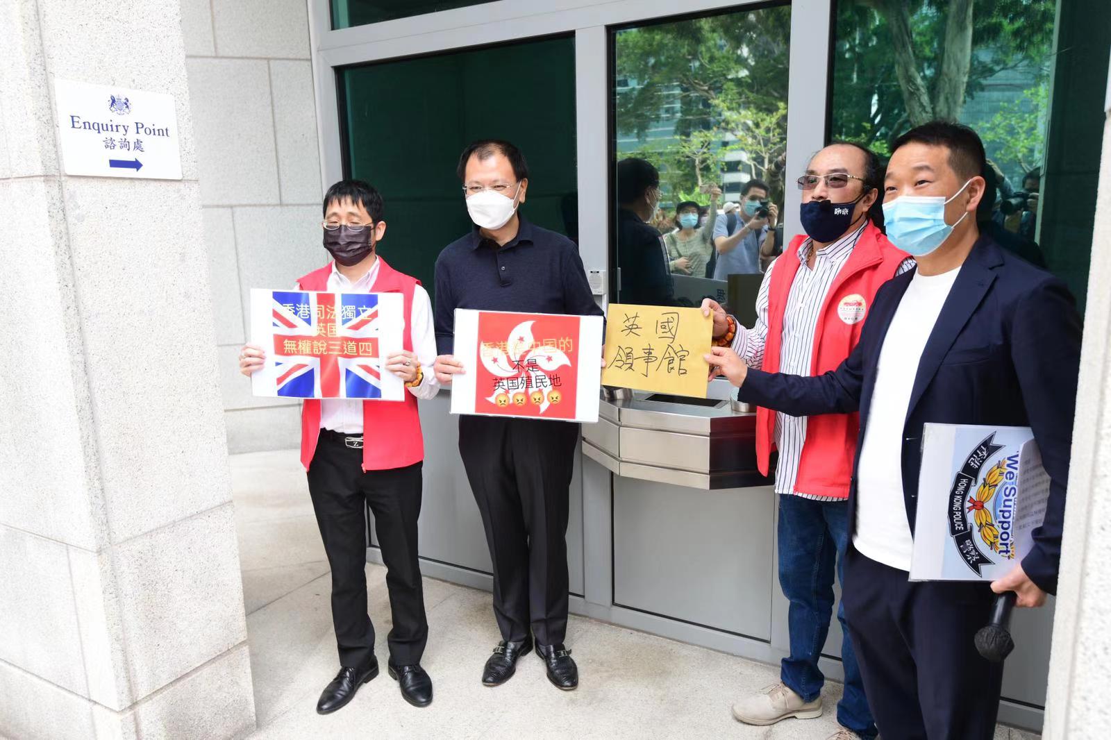 他們表示,香港回歸祖國已20多年,但英國從未停止干預香港事務,最近還妄圖讓持英國BNO旅遊證件香港人可以申請居留英國,做法嚴重違反中英聯合聲明。他們指,近日,英國更對黎智英8·18非法集結案的香港司法判案進行粗暴干預,明目張膽破壞香港司法制度,他們對此表示強烈譴責和抗議,並促英國外相藍韜文應就其不當言論道歉。(記者葉珮如)