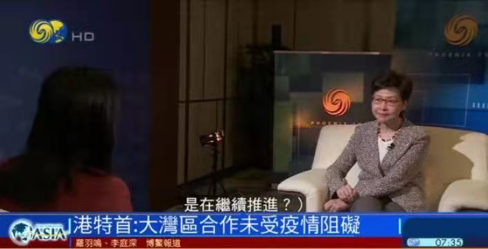 就疫情是否影響到香港與大灣區的合作,林鄭月娥說:「其實粵港澳大灣區在疫情下,沒有太受到疫情的阻礙,有很多事情都在進行。唯一就是沒有面對面開會讓大家可以報道,我們經過粵港澳大灣區領導小組,在過去兩次會議一共有24個項目,現在有八九成都落實了。有一些今年內將會落實,例如港車北上,就是給香港私家車不需要兩地牌,可以經過港珠澳大橋就可以進入大灣區。」
