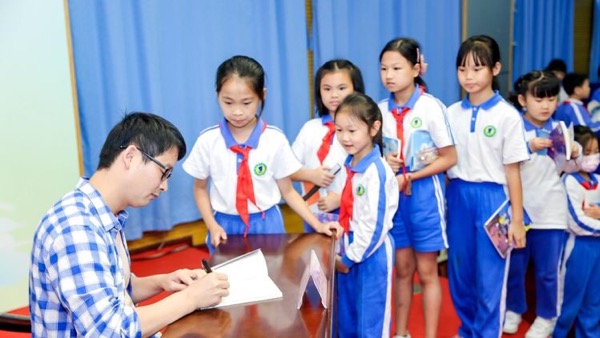 活動邀請了著名兒童文學作家陳詩哥以「宇宙那麼大,我帶你去看看」為主題開展首場講座。陳詩哥在兒童文學領域享有盛名,是孩子們熟悉的作家,曾獲全國優秀兒童文學獎、冰心兒童文學獎、《兒童文學》金近獎等多項大獎,其作品《宇宙的另一邊》入選人教社統編版三年級《語文》下冊。活動現場,主辦單位還開展了「護苗2021專項行動」主題宣傳,向師生派發「綠書籤」300餘張,展示主題宣傳海報,推廣優秀主題出版物,積極營造健康向上的校園氛圍,宣傳「掃黃打非新風」正能量。