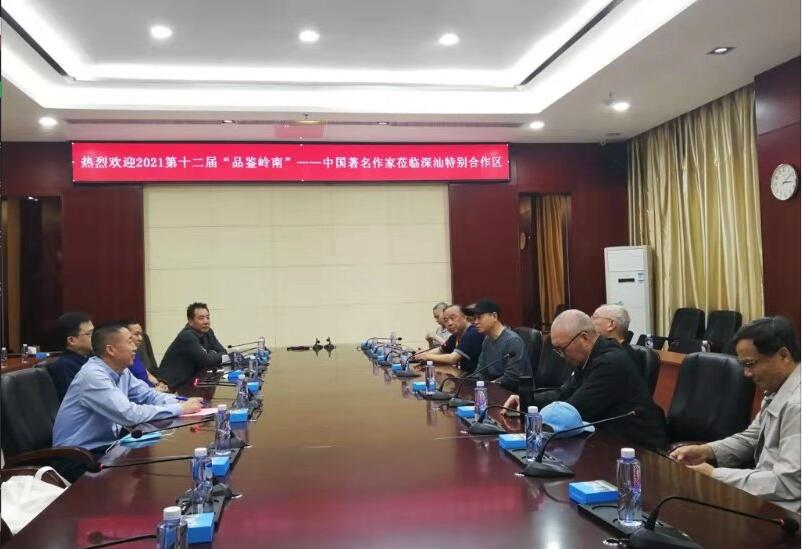 4月17日上午,參觀完鵝埠先進製造集聚區、新厝林古村寨、新杏村曹氏祖祠和赤河廣場等處之後,由中國人民解放軍海軍政治部創作室原主任、電視劇《喬家大院》的作者、編劇朱秀海任團長,並與王炳根、南翔、連俊義、沈衛星、王劍冰、陳繼明、溫亞軍等7位中國著名作家組成的第十二屆「品鑒嶺南」中國著名作家採風團只作午間短暫休息後,便出席了座談會,進一步了解深汕合作區的規劃建設發展情況,並就如何更好地建設產業高地、人文勝地、生活福地建言獻策。