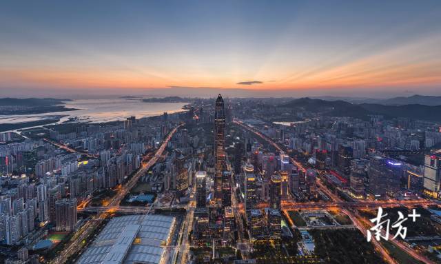 深圳市的傍晚,燈光璀璨。董天健 姚志豪 攝