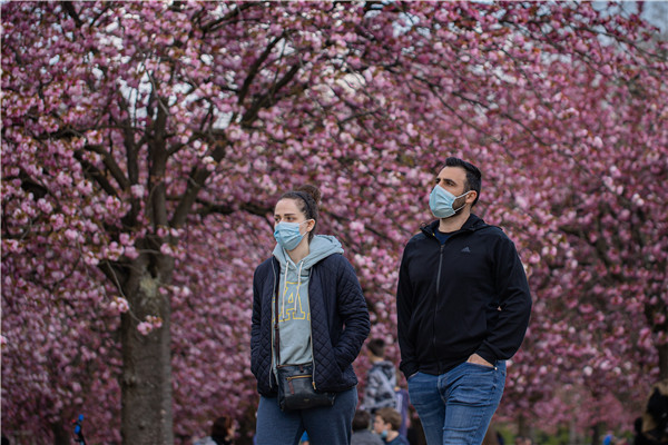 4月20日,人們在法國巴黎近郊的國璽公園欣賞櫻花。 奧雷利安·莫里薩爾 攝