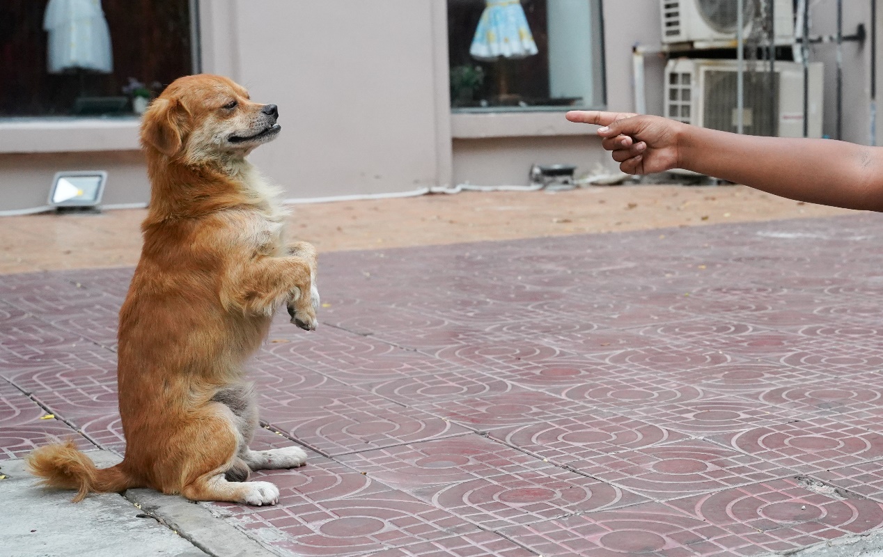 當地時間4月16日,在柬埔寨金邊,因新冠病例不斷增加,全市實施封鎖限制措施期間,一個小男孩在空蕩蕩的街道上與小狗嬉戲。