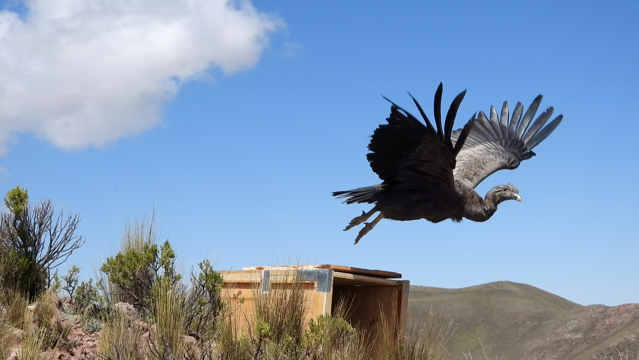 當地時間4月17日,在玻利維亞,一隻五歲的雄性安第斯禿鷲在經過護理恢復健康後被放生到野外。