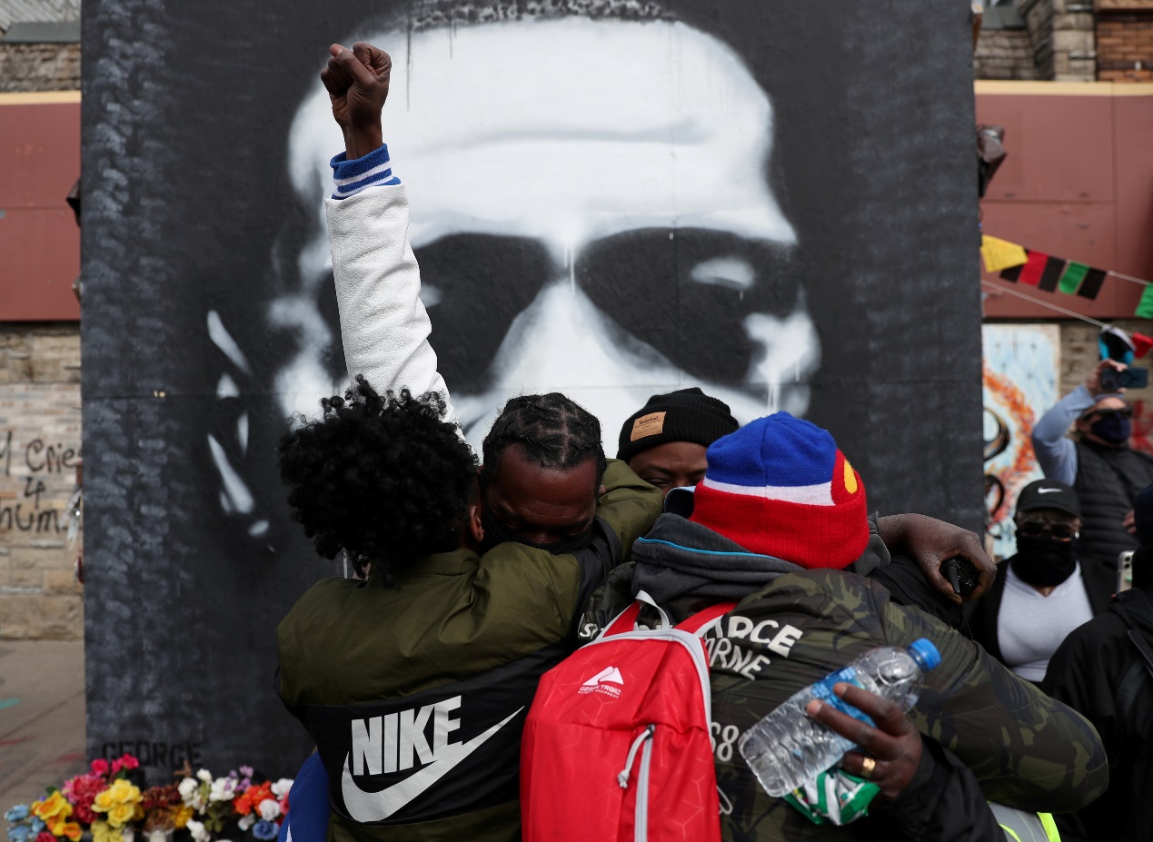 當地時間4月20日,在美國明尼阿波利斯市,法院對轟動全美的弗洛伊德案作出判決,陪審團裁定被告肖萬的全部謀殺和過失殺人罪名成立。有美國民眾互相擁抱,慶祝判決結果。