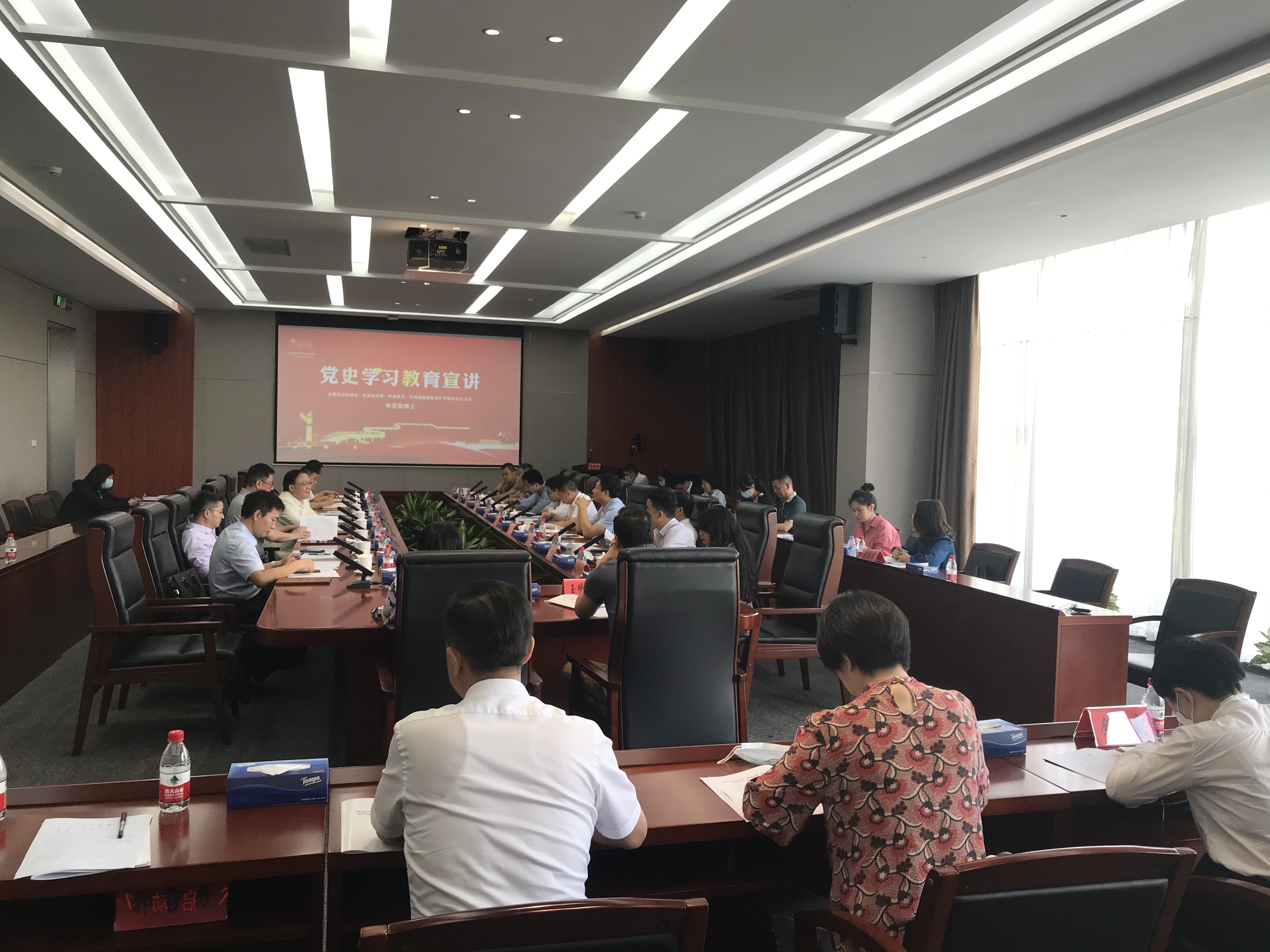 隨後,特聘講師韓望喜、袁曉江、杜玉濤三人分別就黨史學習教育、深圳特區史、抗疫故事等專題進行宣講。韓望喜深刻闡述了開展黨史學習教育的重大意義,希望大家把黨的歷史學習好、總結好,把黨的成功經驗傳承好、發揚好。袁曉江用一個個的重要事件生動講述了深圳從漁村的改革開放到建立市場經濟體制的歷程,講述了創新是深圳發展永恆的動力。杜玉濤則以科研專家的身份,從自身親身經歷出發,講述了感人的抗疫故事,這些故事為中國制度、中國精神注入了更為豐富厚重、生動深刻的內涵。