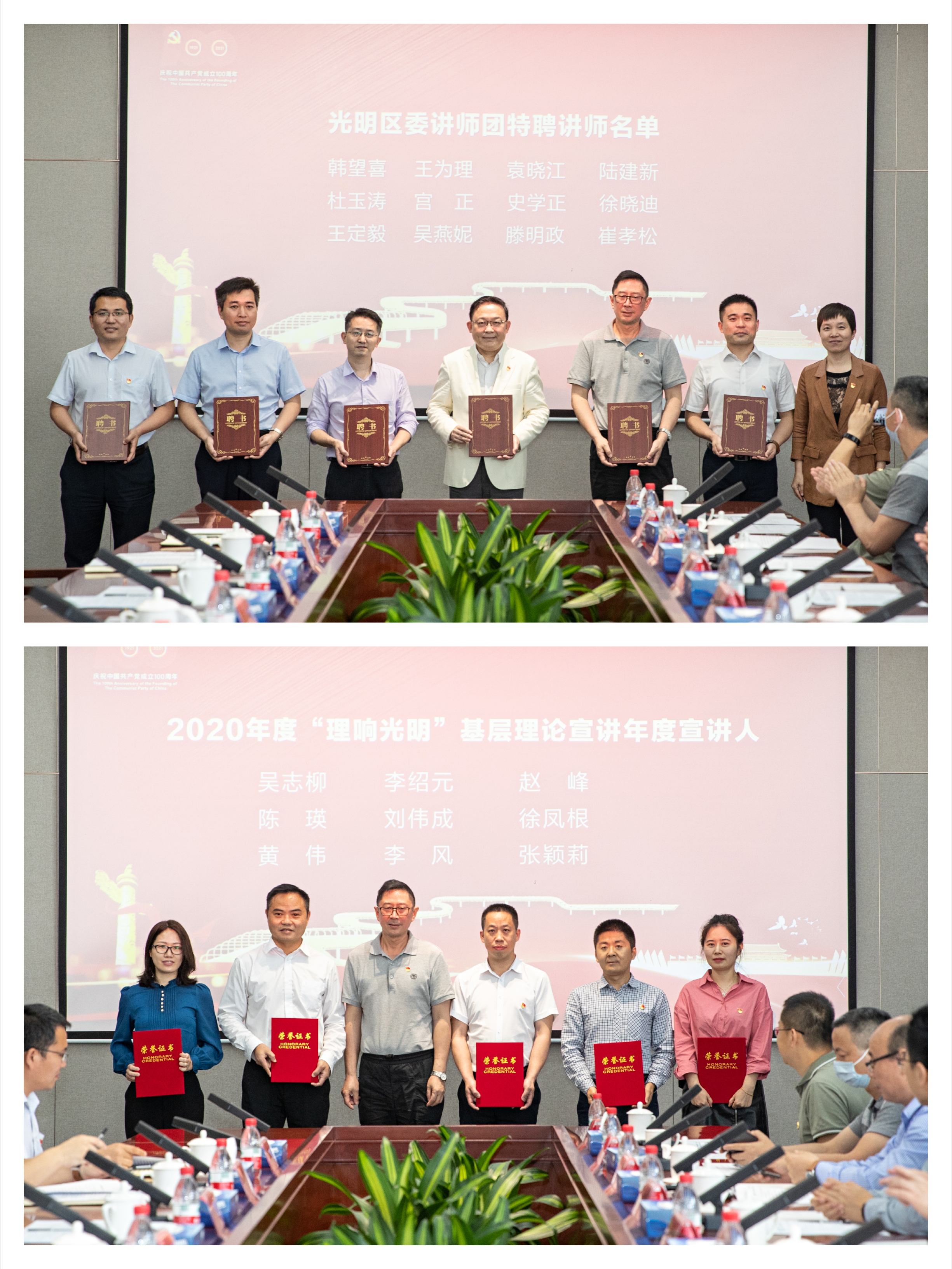 會議宣讀了光明區委講師團特聘講師、2020年度「理響光明」基層理論宣講先進集體、2020年度「理響光明」基層理論宣講年度宣講人名單,並舉行聘書、證書頒發儀式。