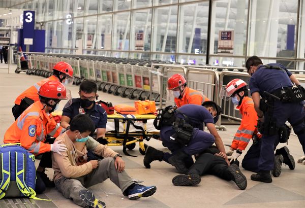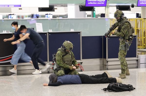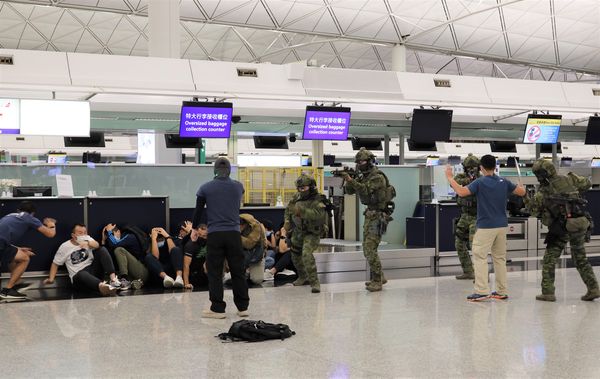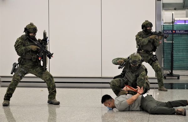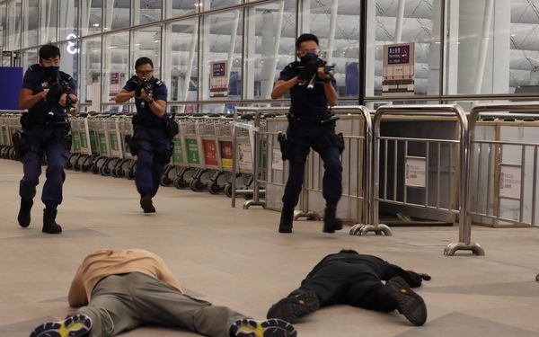 警務處行動部和跨部門反恐專責組(專責組)23日凌晨,在香港國際機場聯合舉辦代號為「鐵志」的反恐演習。