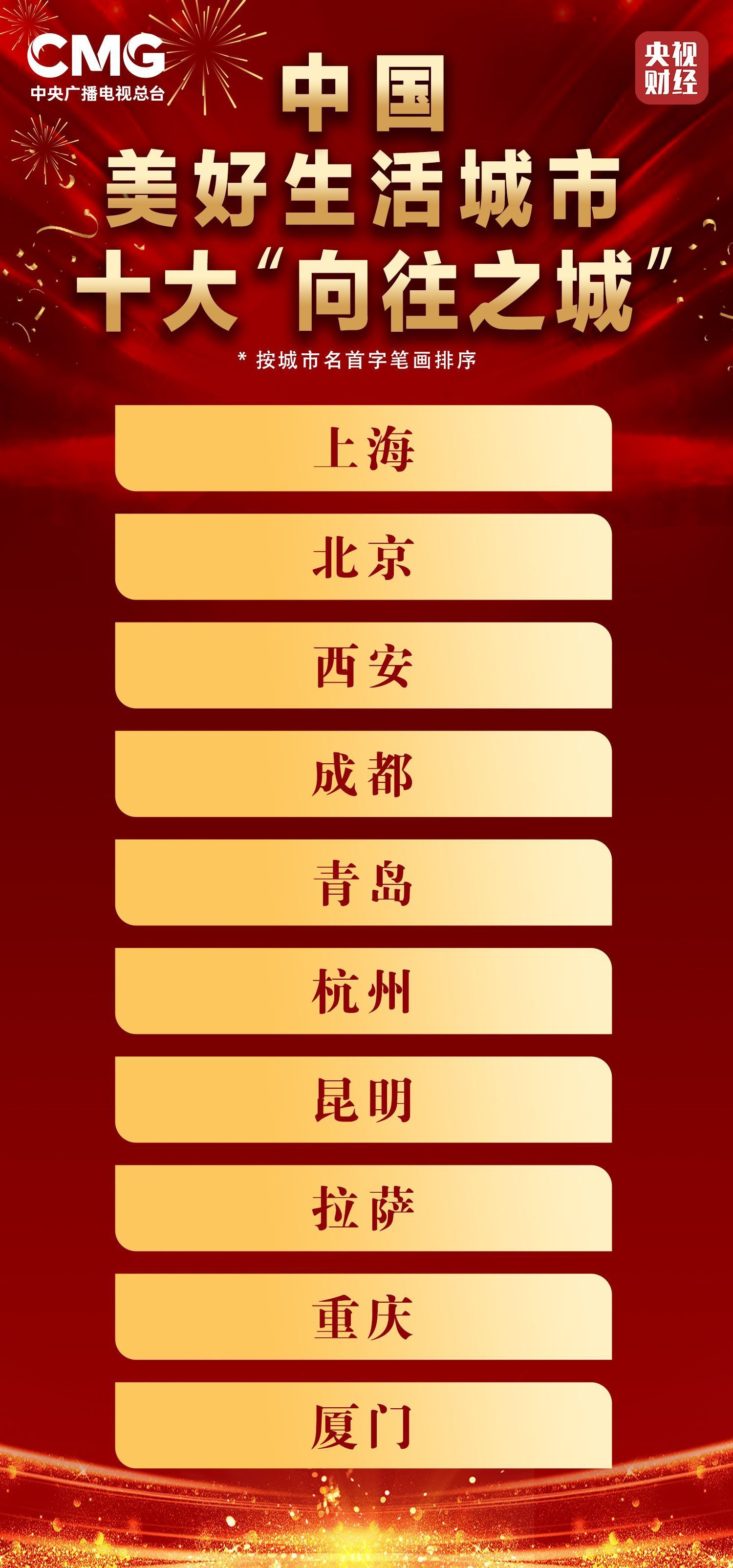 十大「向往之城」:上海、北京、西安、成都、青島、杭州、昆明、拉薩、重慶、廈門(排名規則同上)