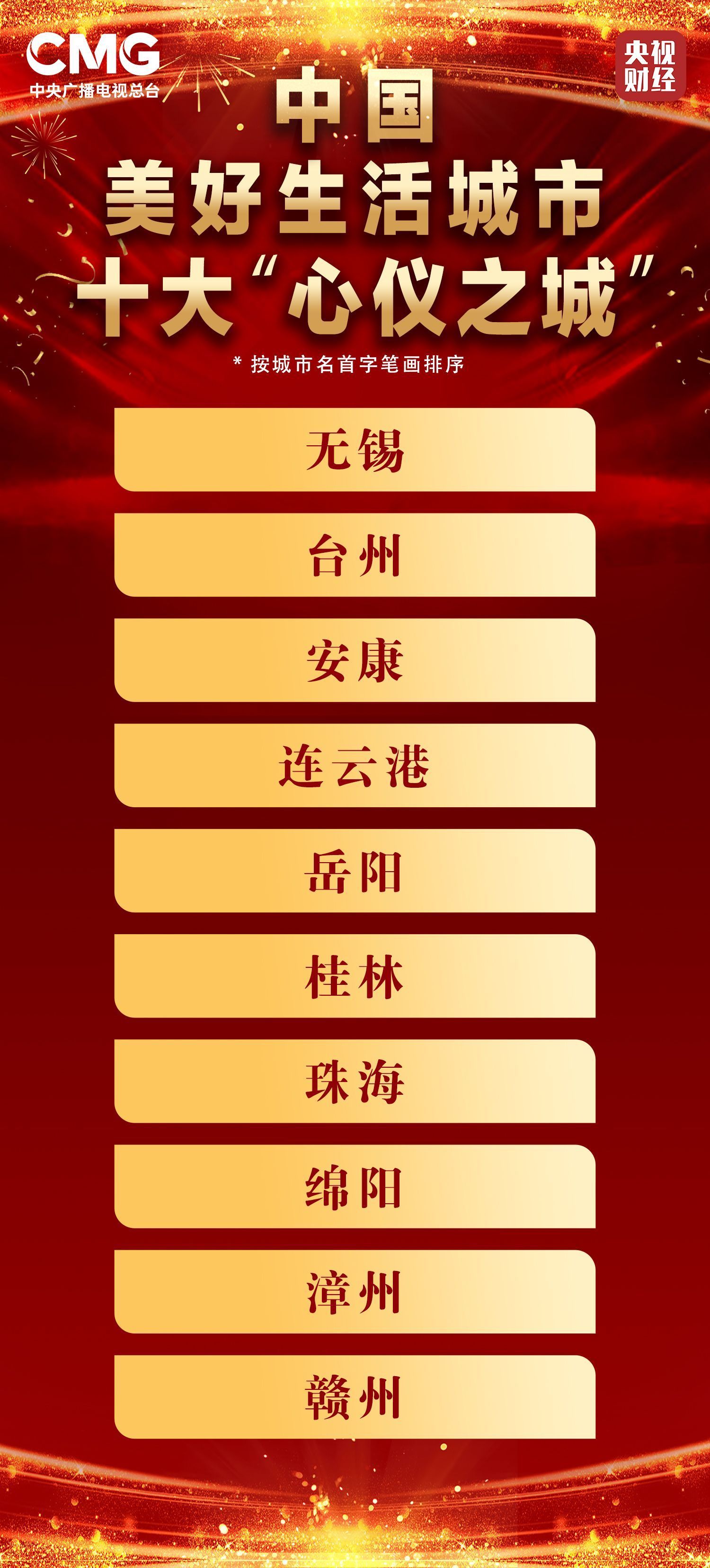 十大「心儀之城」:無錫、台州、安康、連雲港、岳陽、桂林、珠海、綿陽、漳州、贛州(排名規則同上)