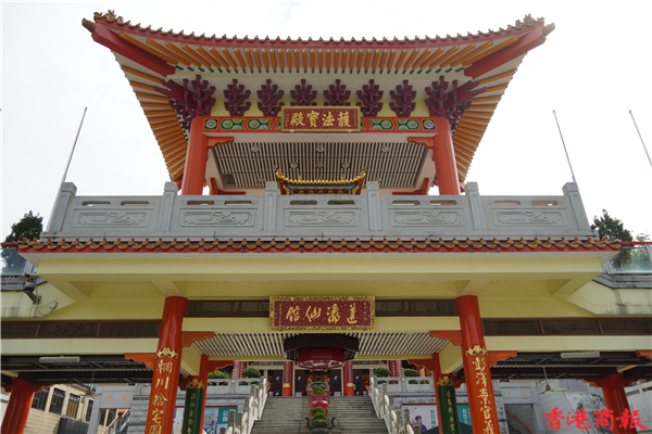 蓬瀛仙館源於廣州三元宮,1929年何近愚、陳鸞楷、麥星階、蘇耀宸及周朗山諸位道長於粉嶺創立,取名「蓬瀛僊館」,提倡道教。1950年採用理監事制管理道觀,向政府申領得後山地段,增闢園林。1972年正式註冊為有限公司,並獲政府批准為非牟利宗教及慈善團體。 蓬瀛仙館依山而築,佔地廣闊,處處亭台樓閣。(馮俊文攝)