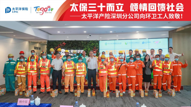 2021年是中國太保建司三十周年,多年來,中國太保一直熱切關注社會民生,積極為民服務,建司30周年之際,中國太保產險深圳分公司為了傾情回饋社會,積極踐行使命與擔當,傳遞愛心與溫度,與深圳市民共享發展成果。4月26日,在「五一」國際勞動節即將來臨之際,中國太保產險深圳分公司舉辦了以 「太保三十而立,傾情回饋社會」為主題的環衛工人慰問活動。