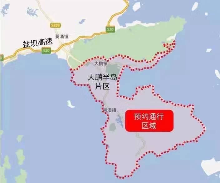 據介紹,五一期間大鵬半島實行預約通行,交通管制區域為大鵬新區迭福山隧道以南(含迭福山隧道)所有道路,如無預約車主進入交通管制區域,將面臨罰款300元、扣3分的處罰。9座及以下小型客車,通過深圳交警微信公眾號、深圳交警官網、預約通行二維碼、商戶代約等途徑預約成功後,允許按預約時間進入管制區域行駛,離開時間不受限制。2021年不再臨時增加預約指標,每日配額為4萬個,其中開放給個人預約數為2.5萬個,商家的為1.5萬個,且只接受網上預約,不再接受現場補約、電話補約。