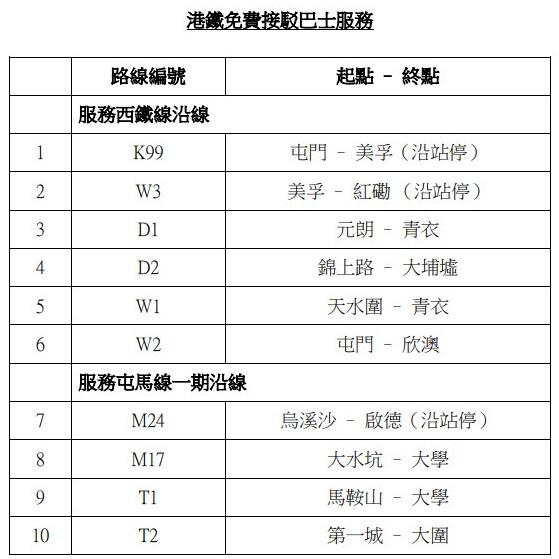 港鐵當日清晨5時15分起,將提供多條免費巴士,運輸署呼籲市民預早計劃行程。