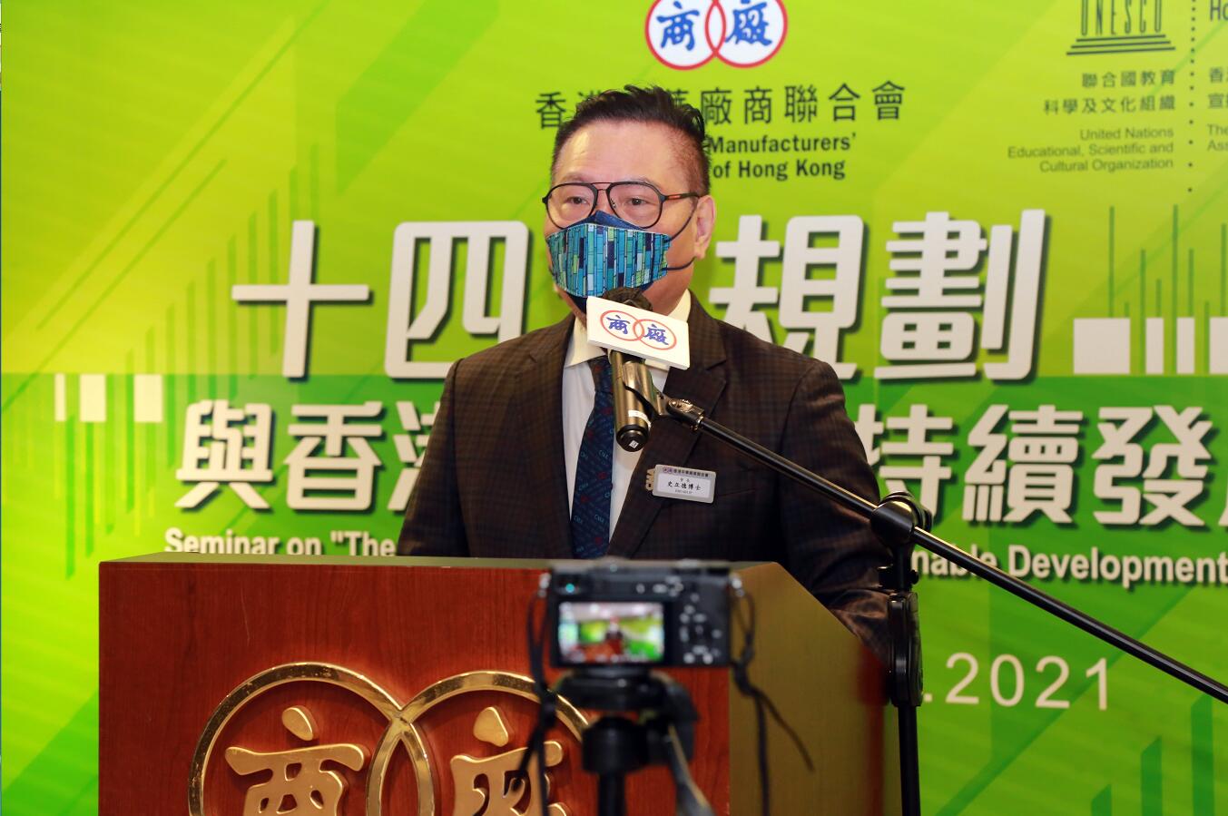 廠商會指研討會以「線上+線下」形式進行,會長史立德在致歡迎辭時提到隨着內地已達成「全面建成小康社會」目標,未來經濟發展將更着重質量和可持續發展上的突破;而香港製造業需要打破既有思維,並循國家發展大勢,在產品設計、生產過程及供應鏈管理等環節加強環保技術應用和創新;至於廠商會在工業貿易署資助下已展開為期16個月之「利用綠色金融工具提升香港非上市企業的可持續競爭力」項目,為企業提供相關技術支援和諮詢服務,以推動本港工商界實現可持續發展。