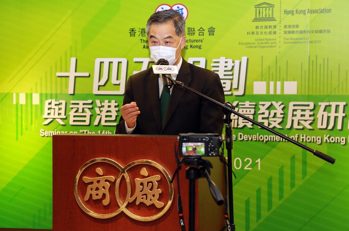 香港中華廠商聯合會今日(3日)與香港聯合國教科文組織協會舉辦研討會,並邀請了全國政協副主席梁振英擔任主禮嘉賓,與業界代表一同探索香港廠商如何藉「十四五」規劃機遇發掘更多綠色商機。