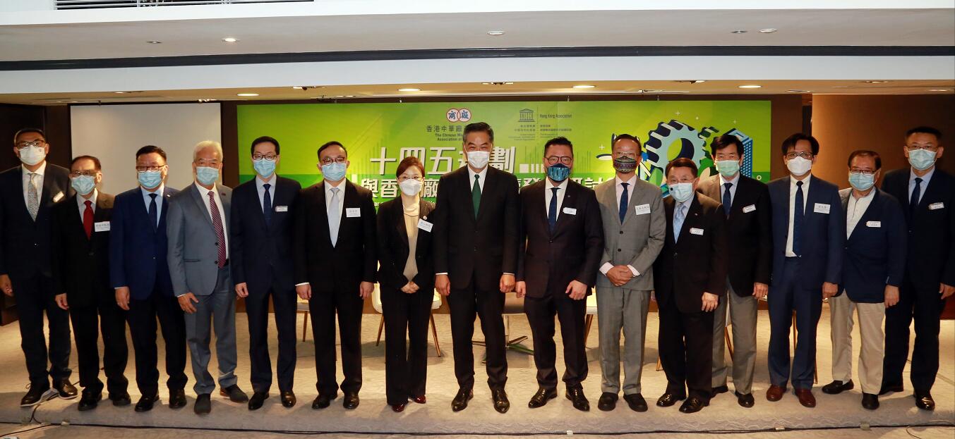 廠商會表示永遠名譽會長尹德勝、常務副會長盧金榮、副會長黃家和、陳國民、吳國安、駱百強、施榮恆、名譽會長陳鴻基、雷振範及一眾會董會成員都出席了「十四五規劃與香港廠商可持續發展」研討會。