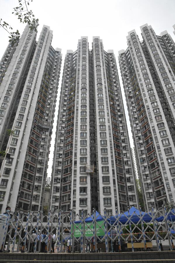 發言人表示,昨晚進一步分析顯示,兩名患者都涉及傳染性較高的N501Y變種病毒,認為必須採取審慎的感染控制措施,兩幢大廈沒有病徵的住戶會送往檢疫中心;若住戶有病徵,將送院治療,涉及的人士會強制檢疫21日。(记者 蔡启文摄)