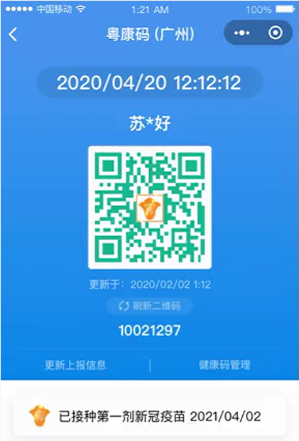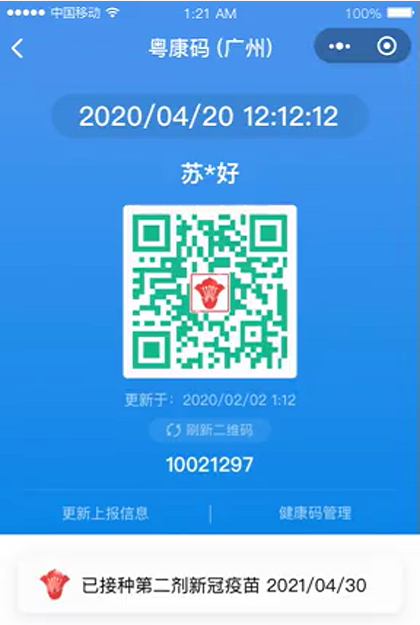 5月6日,記者從廣州市衛健委獲悉,昨日起接種過新冠疫苗的廣州市民,穗康碼上多了一朵閃閃發光的小木棉花。