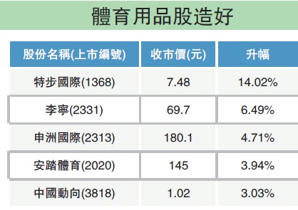 體育用品股強勢