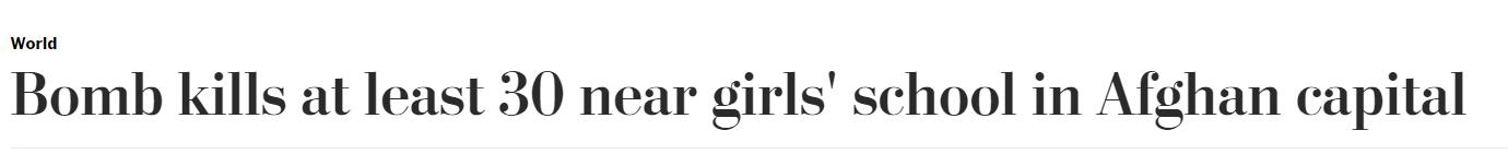 报道指爆炸發生在喀布爾西部一間女子學校附近,死者許多是11至15岁的年轻学生。