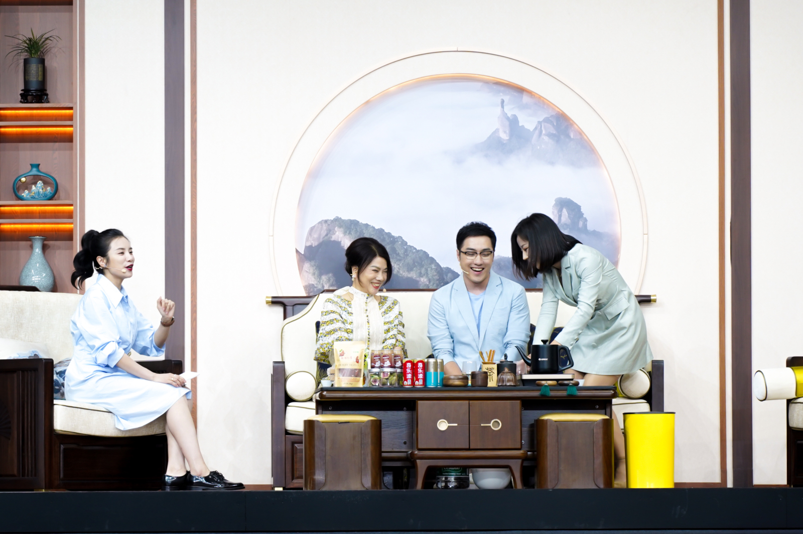 在極具韶關特色的採茶歌舞《茶韻飄香》的婉轉旋律中,直播正式拉開帷幕。本次直播延續了場景化的展現方式,為線上線下觀眾打造沉浸式觀賞體驗。董明珠和現場嘉賓一起走進客廳、臥室、廚房、陽台等場景,就日常生活中的舒適、清潔、健康需求展開討論。明珠空調、王者空調、臻新風雙向換氣空調、「獵手」系列空氣淨化器、消毒液製造機、熱泵洗護機等品質好物悉數亮相,打造全方位的健康舒適生活體驗。