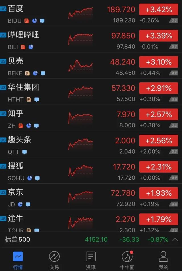中概股跑贏美股大盤,中概互聯網指數ETF漲超1.7%。熱門中概股逆市上漲,中概互聯網指數ETF漲1.7%,富途、斗魚漲6%,虎牙、拼多多、百度、嗶哩嗶哩漲超3%,京東和騰訊ADR漲2%,阿里巴巴漲近1%。