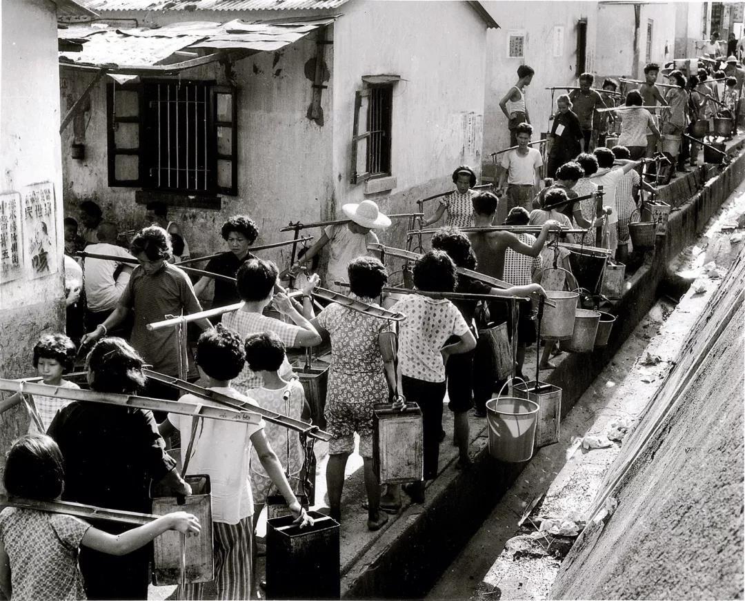 香港供水4小時實施期間,找尋水源燒飯、洗衣,是婦女們日常生活的重責,挑水的行列亦以女性為主。