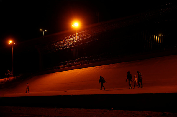 5月11日,在墨西哥華雷斯城,尋求庇護的移民穿過里約熱內盧布拉沃河,向美國邊境巡邏人員自首,寻求庇護。