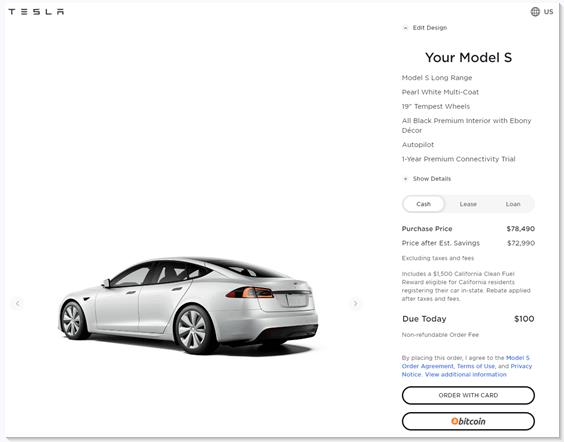 特斯拉在2月份提交給美國證券交易委員會(SEC)的文件中透露,該公司購買了價值15億美元的比特幣,且未來可能會投資更多的比特幣或其他加密貨幣。