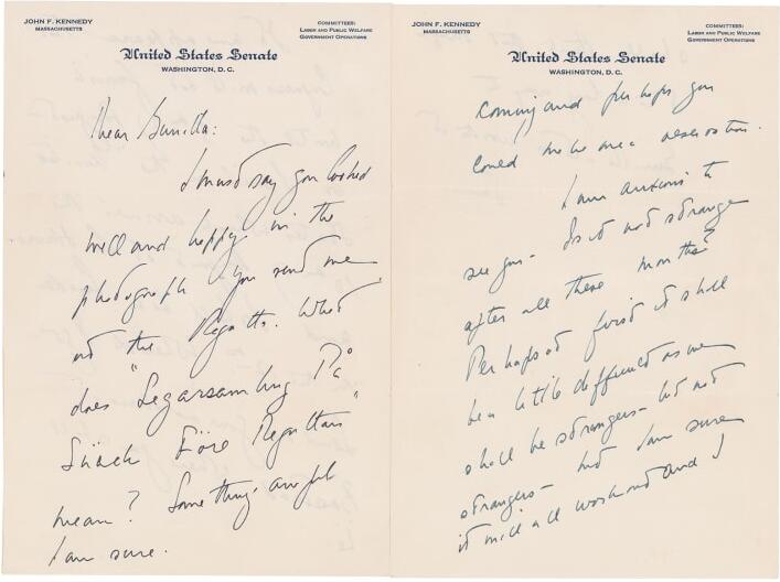 據報道,這些情書寫於1955年和1956年之間,比甘迺迪擔任總統的時間還要早。當時他在麻州擔任參議員,信件是用參院的信箋寫的,信末,簡單簽下了自己的小名「Jack」。
