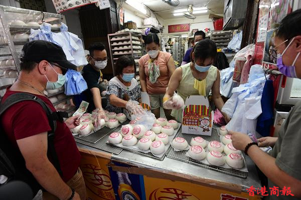 今天是佛誕,一年一度的長洲太平清醮活動,在疫情下已連續兩年取消飄色巡遊及搶包山活動,但有在北帝廟復辦神功戲及送神儀式等,連三座大包山也由本來約十五點五米高,減至四點六米高。而神功戲須在現場觀眾使用安心出行程式下進行,多項活動一切從簡。有店舖仍有出售平安飽,但不算大量製造,仍吸引市民購買應節。
