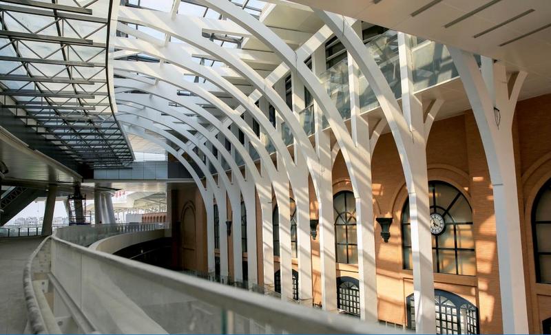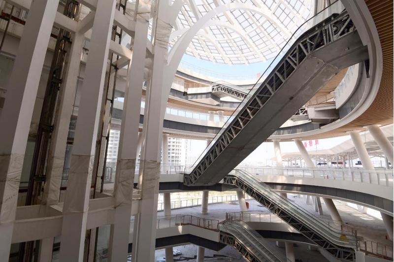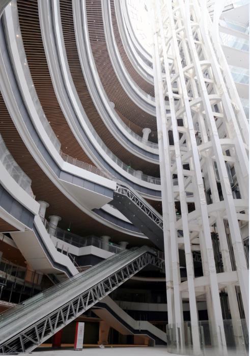 而ITC項目設計中最特別之處當屬其首創智慧中樞「車站核」概念,衍生「客流四首層」設計。ITC的「城市走廊」貫穿南北,從地下二層到地上五層,高45米,寬15米,長度約為100米。它是橫貫了車站的半室外空間,聯繫建築的各個公共空間與城市,是整個項目的「脊柱」。而「車站核」仿佛一個立體化的十字路口,解決垂直交通,其總高度為55米,寬度約為50米,由8個層層旋轉的橢圓疊加而成,成為解決日均40萬客流順暢運行的關鍵答案。這樣通過「車站核 城市走廊」融合商業樓體的設計,ITC整合所有資源於一體,實現一站式多元商務生活體驗,成為集商務、休閒、購物及服務於一體的TOD城市綜合體典範。