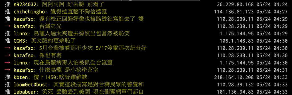 台灣網友對於《時代》雜誌提出的相關報道感到丟臉與驚訝。(PTT)