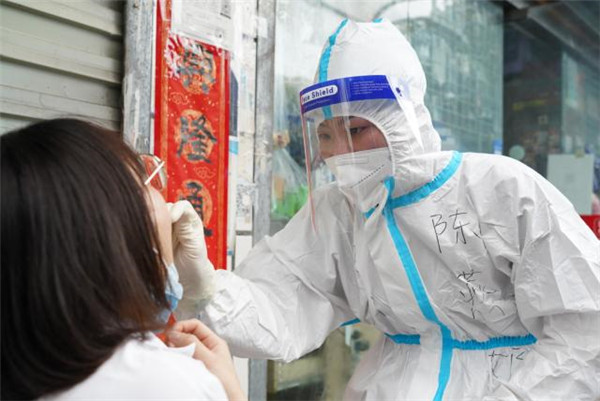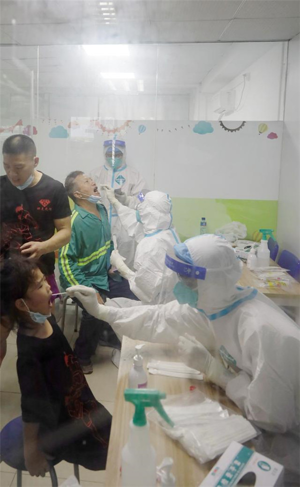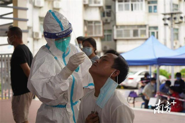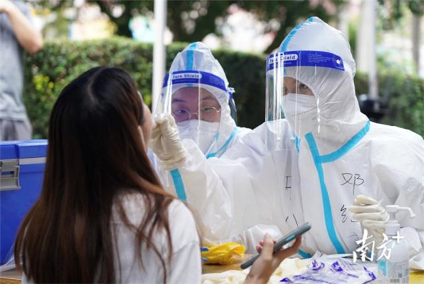 鹽田區鵬灣社區鵬灣花園一村,醫護人員正在做核酸檢測採樣,居民十分配合。