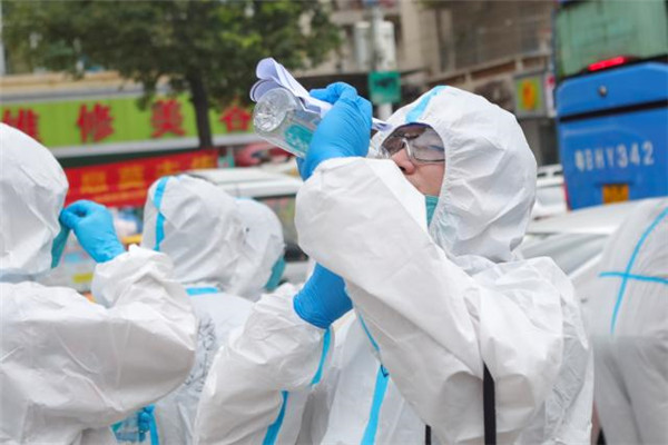 連日來,深圳的醫護人員、社區工作人員、志願者們悉數上陣,奮戰在防疫一線、烈日炎炎下,他們汗流浹背,全力以赴持續作戰。