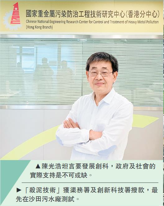 讓香港的發明,改變世界。經國家科技部批准設於香港科技大學的國家重金屬污染防治工程技術研究中心香港分中心,其團隊原創,並向世界推廣的「殺泥技術」,能夠減少百分之九十的污泥沉澱物,節省超過一半污水處理費和所需土地,從而減少近四成溫室氣體排放,為解決生活污水這全球大課題,給出實實在在答案,也印證了「科技是第一生產力」這個論斷的真確和可行。